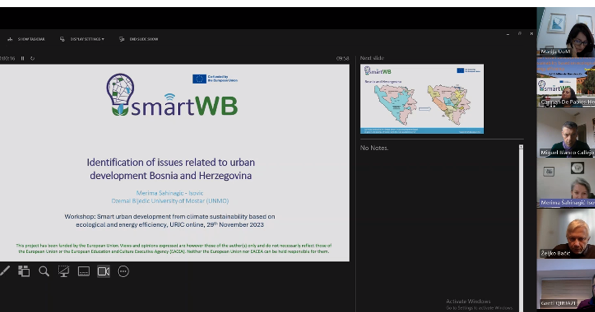 U organizaciji Univerzitetu Rey Juan Carlos u Madridu, Španija, 29. novembra 2023. godine održana je on line radionica: Pametan urbani razvoj od klimatske održivosti zasnovan na ekološkoj i energetskoj efikasnosti.