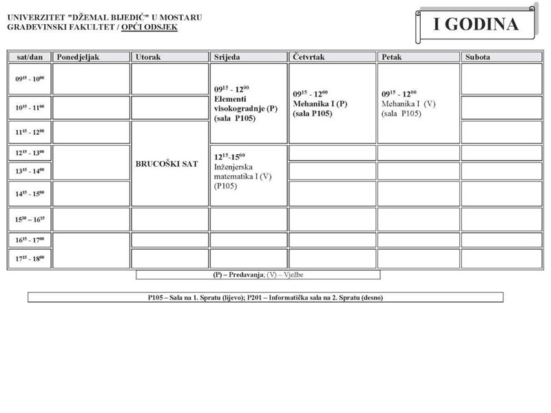 Raspored nastave zimskog semestra na I ciklusu studija za akademsku 2024/2025.godinu